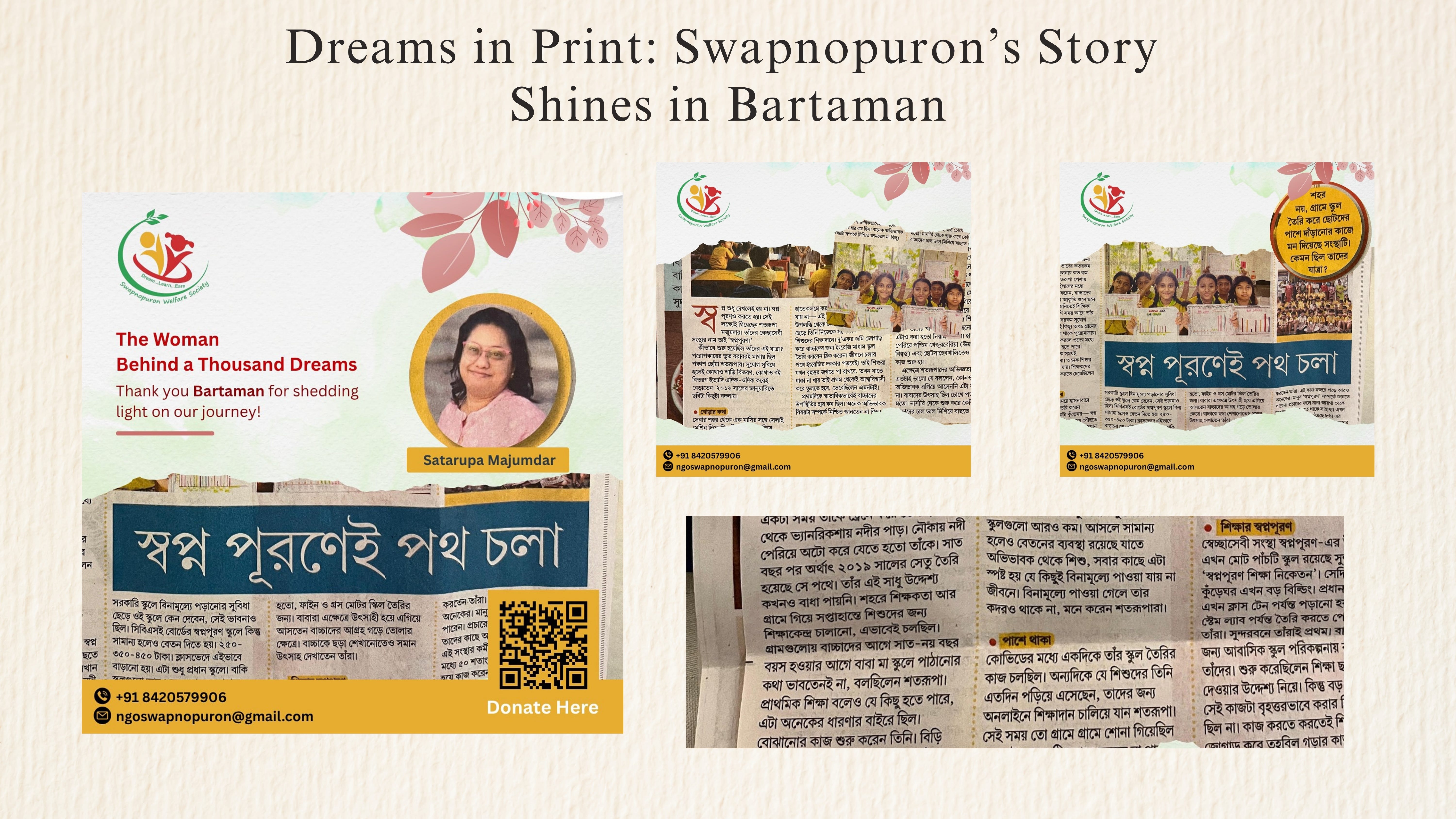 Highlight: Our mission and founder’s vision were beautifully celebrated in leading newspaper Bartaman, showcasing Swapnopuron’s inspiring journey from a dream to a movement.